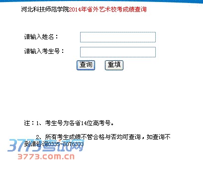 河北科技师范学院2014年艺术类校考成绩查询入口