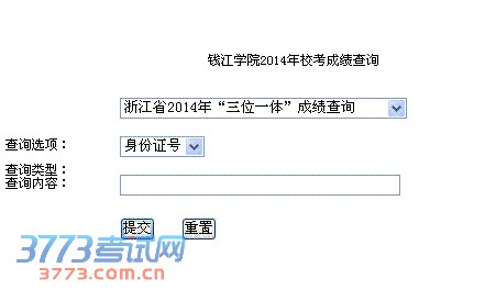 查询类型: 浙江省2014年“三位一体”成绩查询 黑龙江、新疆2014年艺术类校考成绩查询