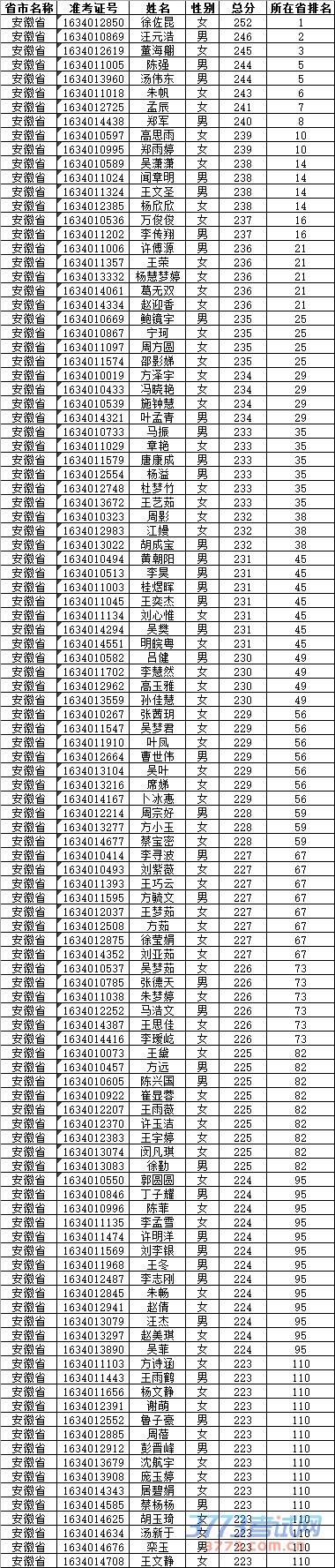 2016中南林业科技大学美术类校考安徽合格考生名单