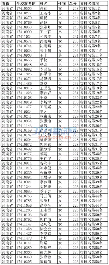 2017中南林科技大学美术类校考河南合格考生名单查询