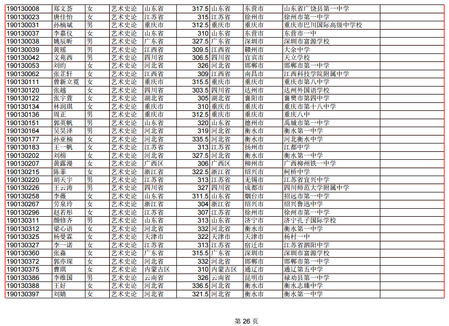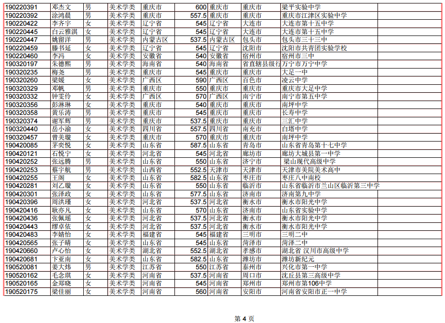 经清华大学招生工作领导小组讨论通过,现将2019年艺术类本科专业考试合格考生名单公示如下(以准考证号为序)。 公示期:2019年4月8日-2019年4月19日(10个工作日) 公示期间,单位或个人均可通过来电、来信,具名向清华大学美术学院或学校纪委反映公示对象有关情况。反映情况应坚持实事求是的原则,具体真实,以便调查核实。 联系电话:010-62798170 电子邮箱:myzb@tsinghua.edu.cn