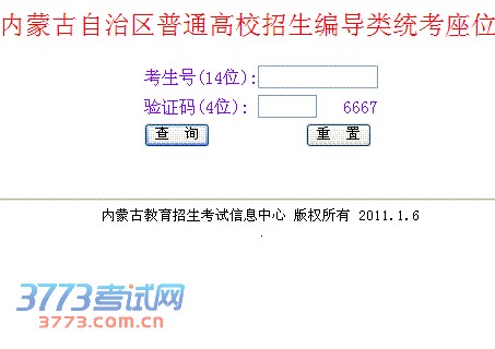2014年内蒙古自治区普通高校招生编导类统考座位查询系统 考生号(14位): 验证码(4位): 6667