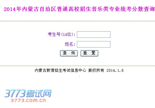 2014年内蒙古自治区普通高校招生音乐类专业统考分数查询