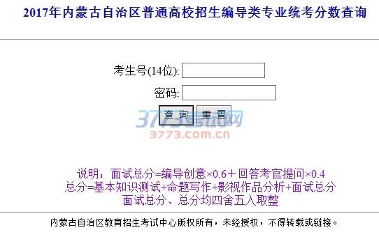 2017年内蒙古自治区普通高校招生编导类专业统考分数查询