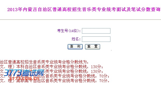 2013年内蒙古自治区普通高校招生音乐类专业统考面试及笔试分数查询