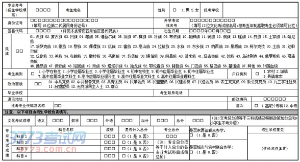 注:(1)考生必须如实填写各项信息。(2)联系电话最长40位,毕业学校名称最长25字,通讯地址最长40字。(3)通讯地址精确到省、市州、区县、街道、门牌号五级。