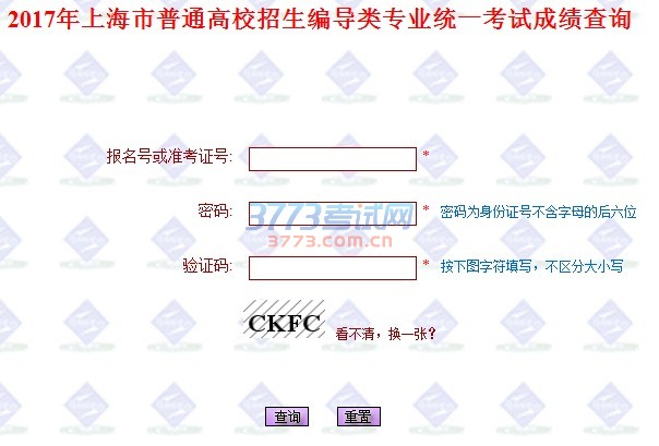 2017年上海市普通高校招生编导类专业统一考试成绩查询