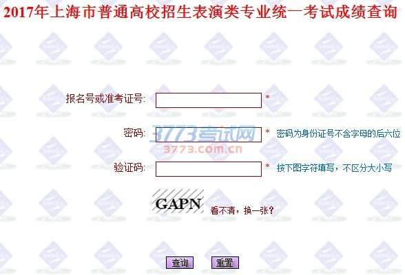 2017年上海市普通高校招生表演类专业统一考试成绩查询