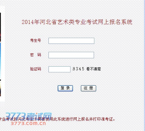 1、本系统为河北传媒学院2014年艺术类专业考试网上报名系统,只有参加我院艺术专业考试的河北考生才需要使用此系统进行网上报名并打印准考证。