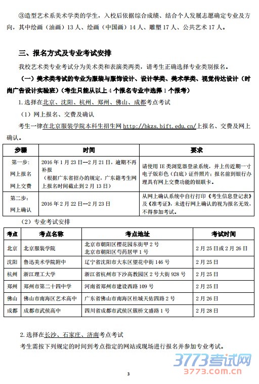 北京服装学院2016年艺术类报名方式及专业考试安排