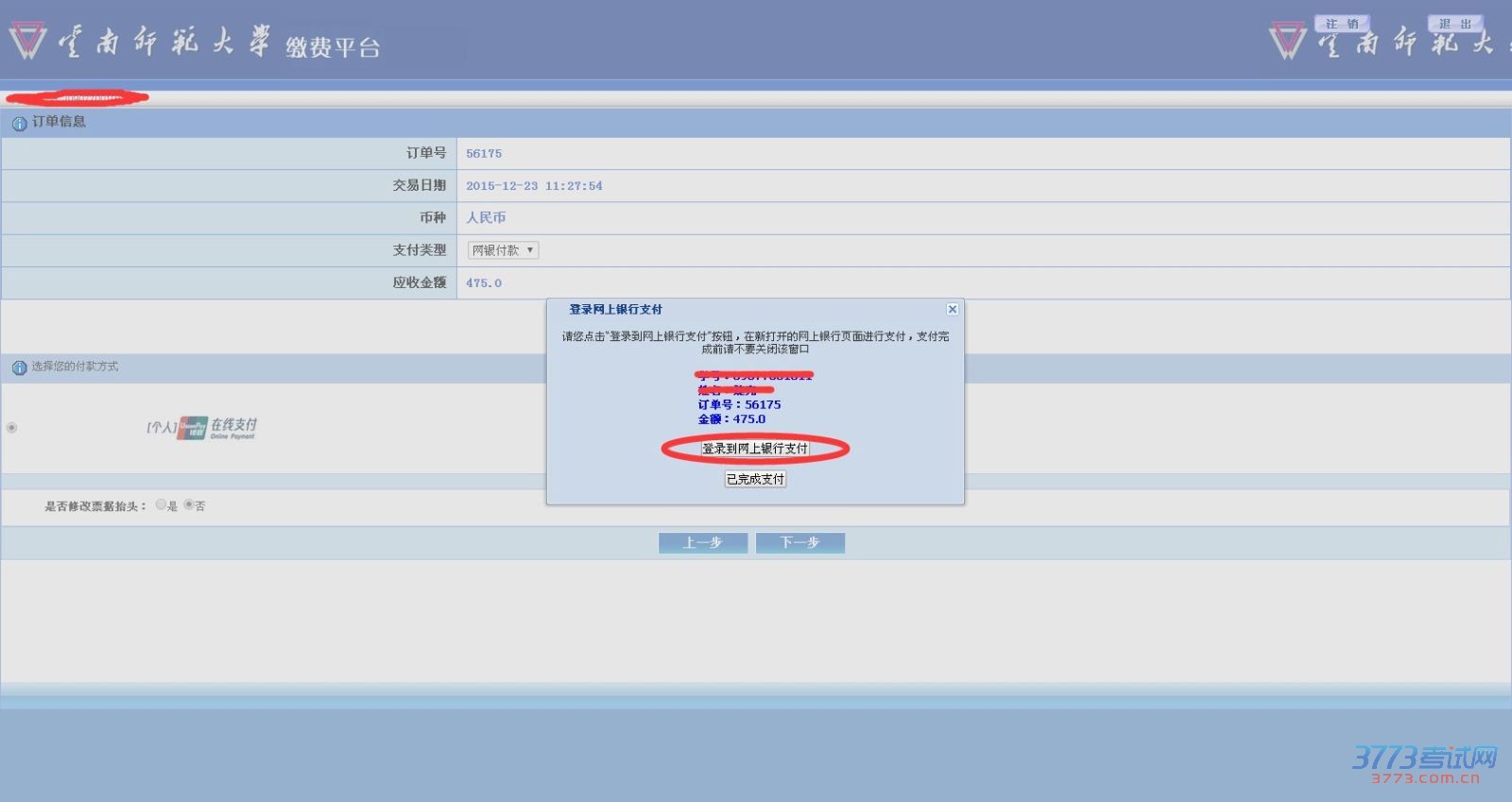 2.点击页面中的“缴费”按钮。即可跳转到缴费确认页面。核对信息无误后点击“下一步”确认订单。
