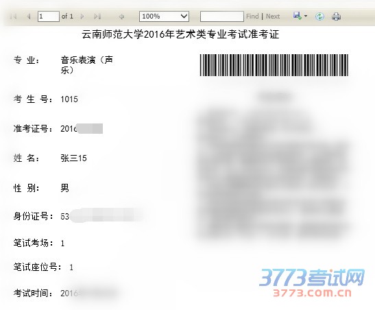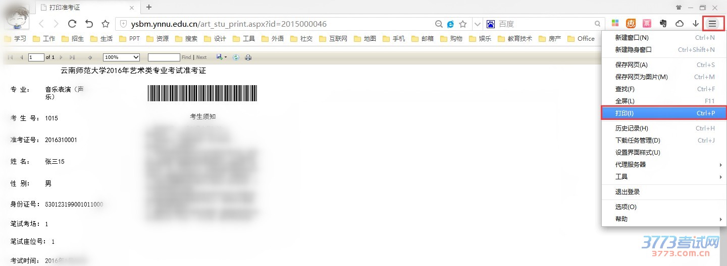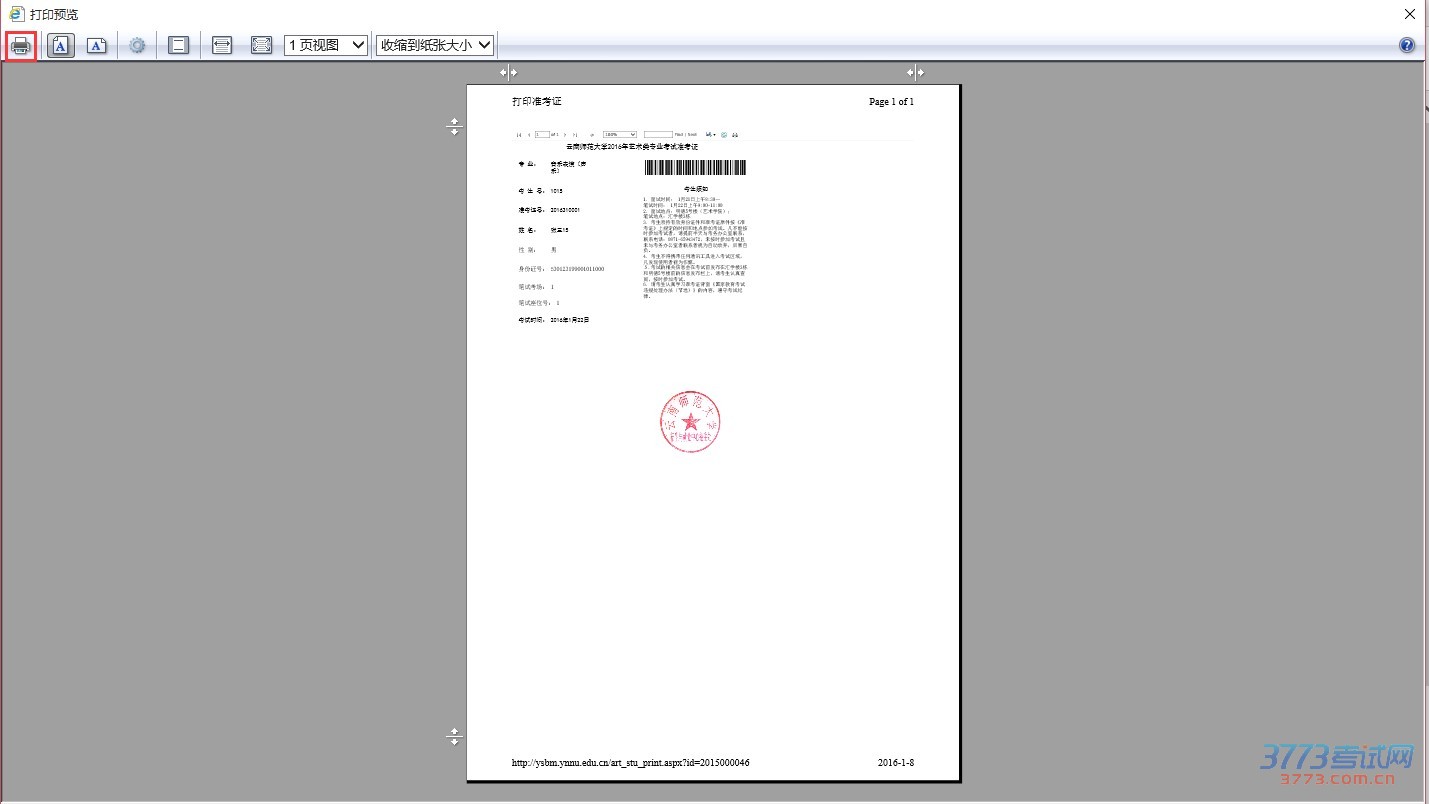 点击 “打印”按钮,即可打印准考证,如图20所示。
