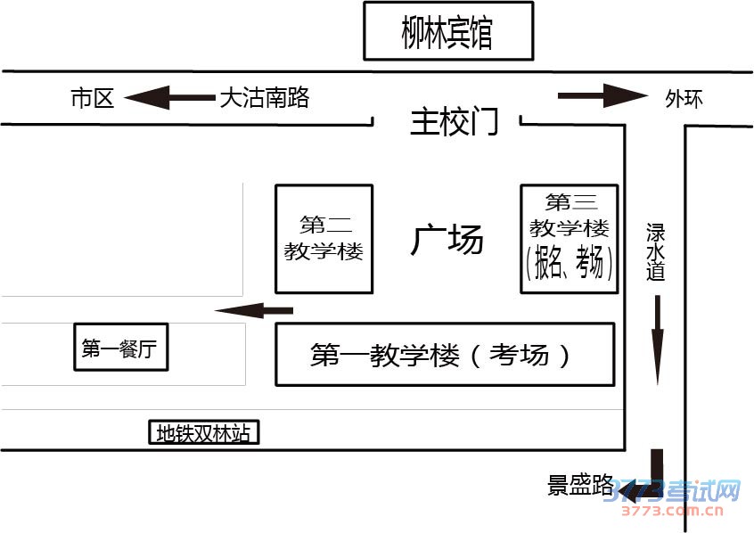 二、考试地点:第一教学楼、第三教学楼(从柳林宾馆对面主校门进入)