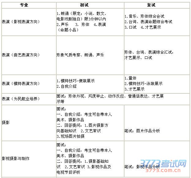 按教育部文件规定,我院美术类专业使用省联考成绩。表演类、摄影、影视摄影与制作和书法学专业考生所报考专业(方向)属省联考范围内的,应按照省有关招生规定执行,使用省联考成绩(具体规定请考生向所在省招办咨询);不属于省联考范围的专业(方向)需参加我院组织的专业考试。个别省份在省联考合格基础上,须参加我校专业考试,详见我校网站后期通知。
