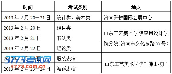 山东工艺美术学院2013年招生专业考试山东考点报名考试时间