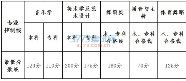 云南省2017年普通高校招生艺术类统考本、专科专业最低控制分数线