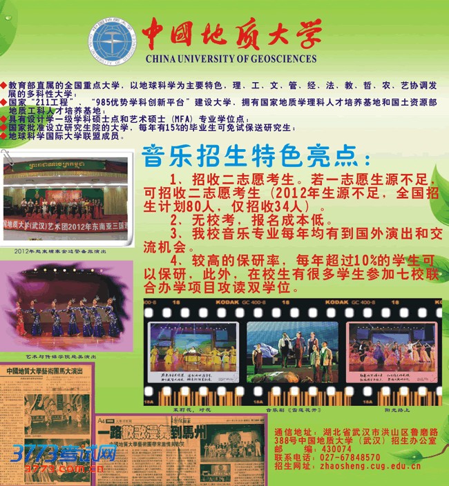 中国地质大学(武汉)2013江苏美术校考时间专业