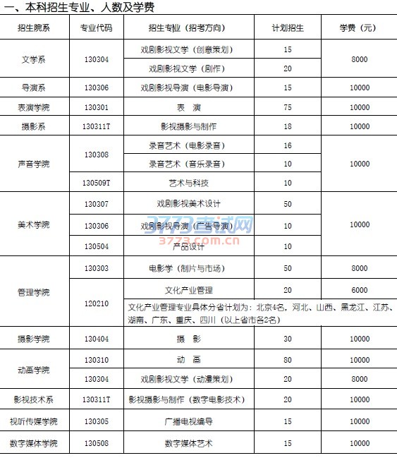 北京电影学院2017年本科、高职招生简章北京电影学院是中国电影工作者的摇篮,在国内电影教育界和文化艺术界享有盛誉,也是亚洲规模最大、世界著名的电影艺术高等学府。我校以优良的教学传统,雄厚的师资力量,齐全的学科专业,完善的教学设备以及规范的教学秩序,成为中国培养电影艺术创作、管理及理论研究人才的重要基地。2017年我校本科计划招生499名,各专业面向全国招生(含华侨、港澳台地区),无分省计划(文化产业管理专业除外),文理兼招,学制4年。高职计划招生60名,分省计划,文理兼招,学制2年。