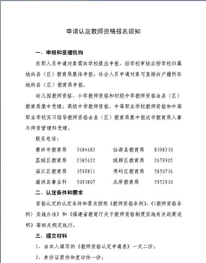 福建莆田市2006年社会人员和2007年应届毕业教师资格认定情况(师范类)
