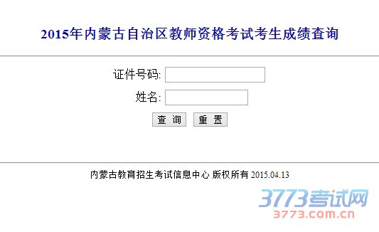 2015年内蒙古自治区教师资格考试考生成绩查询