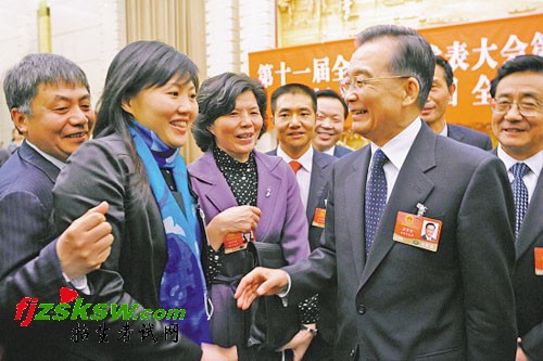 国务院总理温家宝参加浙江代表团审议,来自金华市赤松镇中心小学的方青代表,捧出一份感谢信,那封饱含着浙江全省17万乡村老师感激之情的感谢信深深打动了温总理。蔡荣章 摄