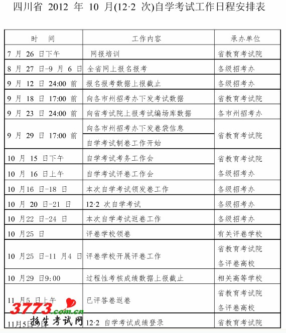 2012年10月四川省教师资格报名时间