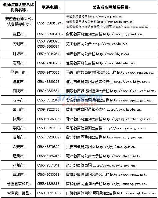 安徽省各市教师资格认定机构联系电话公告发