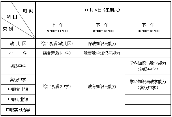 二、2018年下半年中小学教师资格考试(笔试)日程安排表