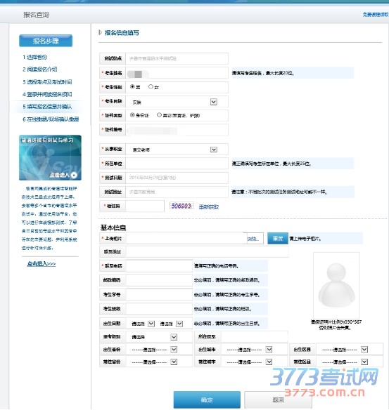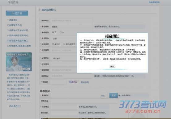 阅读报名须知后,点击“确定”按钮,填写报考信息,如下图: