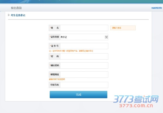 输入个人信息,点击“完成”,进入报名页面,如下图: