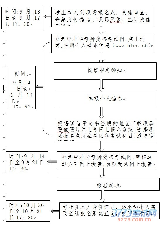 现场 2015下半年河南中小学教师资格考生报名流程图