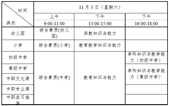 - 2018-9-3·2017下半年湖南中小学教师资格考试时间考试科目