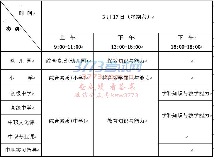 注: 1.初级中学学科知识与教学能力科目为:语文、数学、物理、化学、生物、历史、地理、思想品德(政治)、英语、音乐、美术、体育与健康、信息技术、历史与社会科学、科学等15个学科。