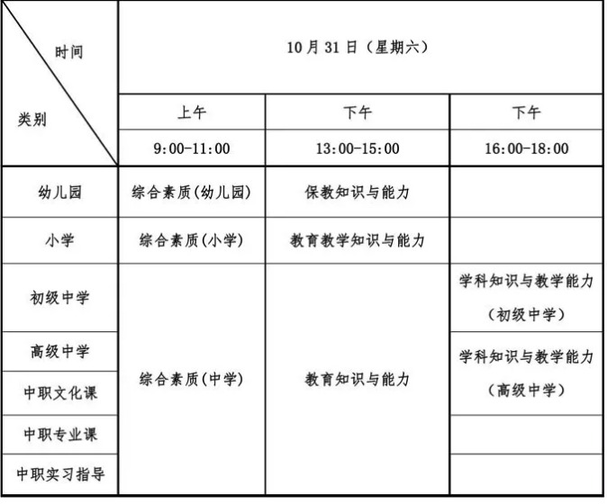(二)考试时间:2020年10月31日。所有科目考试均采用纸笔方式进行,具体安排如下: