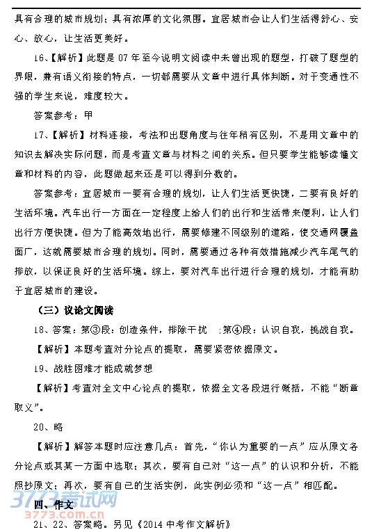 中考作文,中考试题,试题答案,试题点评,希望大家考出好成绩!