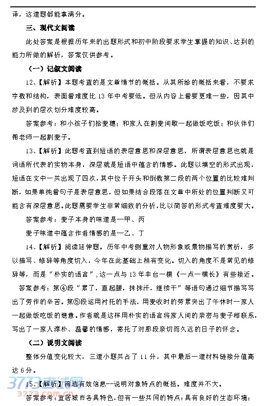 名师点评2014北京中考语文试卷难度