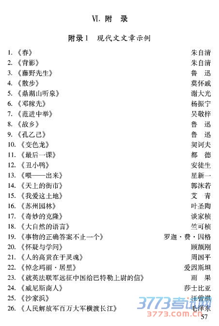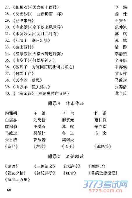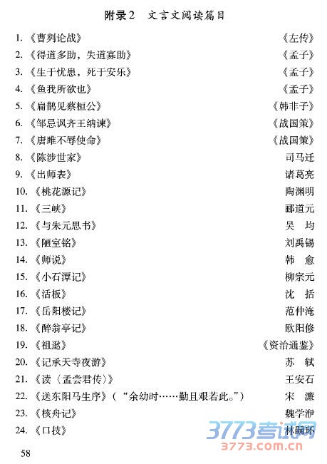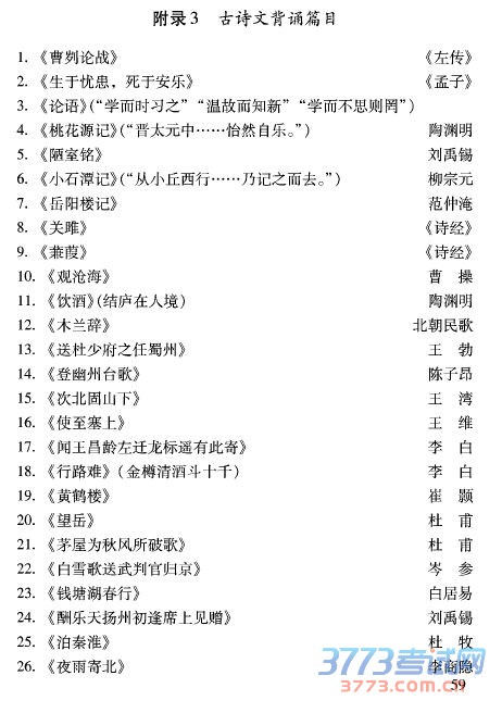 2016北京中考考试说明已经发布,下面是语文考试说明的附录。