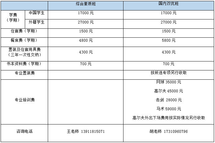 中学综合素质班、国内双优班收费标准