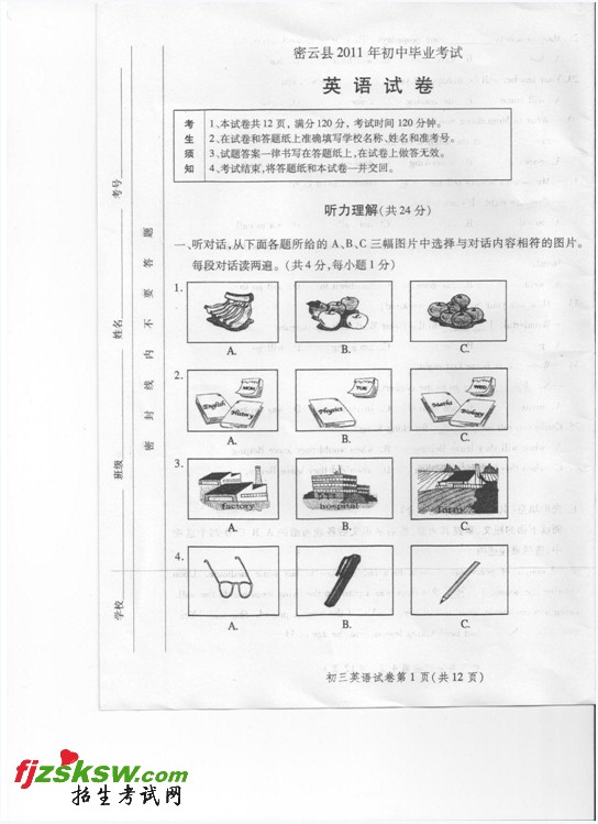 北京密云2011中考一模英语试题及答案