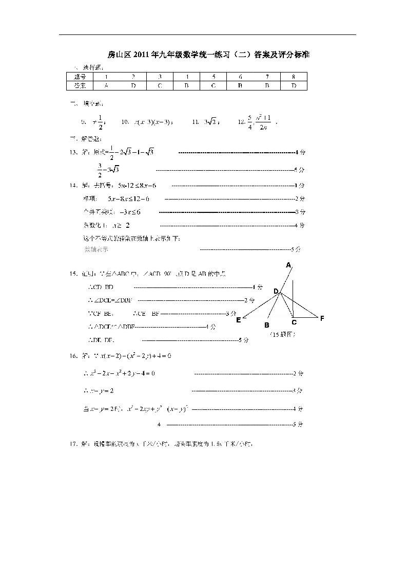 北京房山2011中考二模数学试题答案