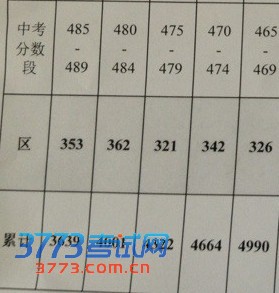 2013北京朝阳区中考分数段排名(5分段)