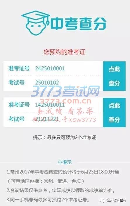 微信查分请关注常州教育考试院和常州电信微信公众号: