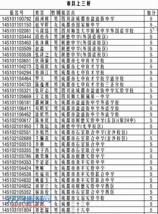 2014成都中心城区及天府新区享受普通高中录取加分政策考生名单公示
