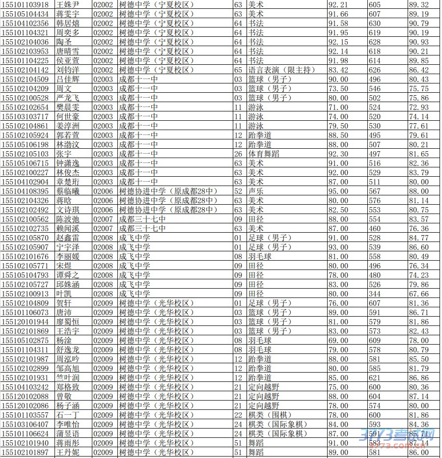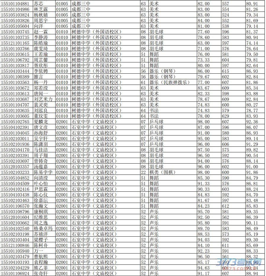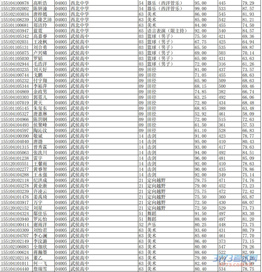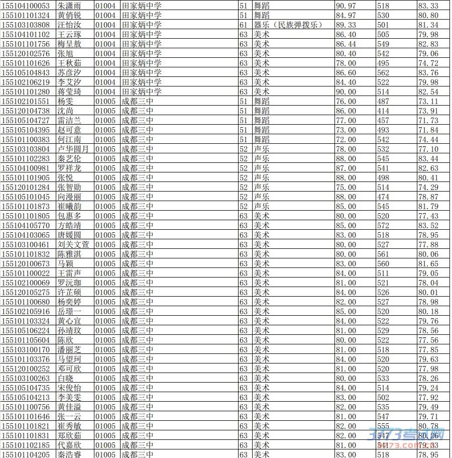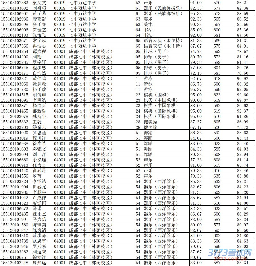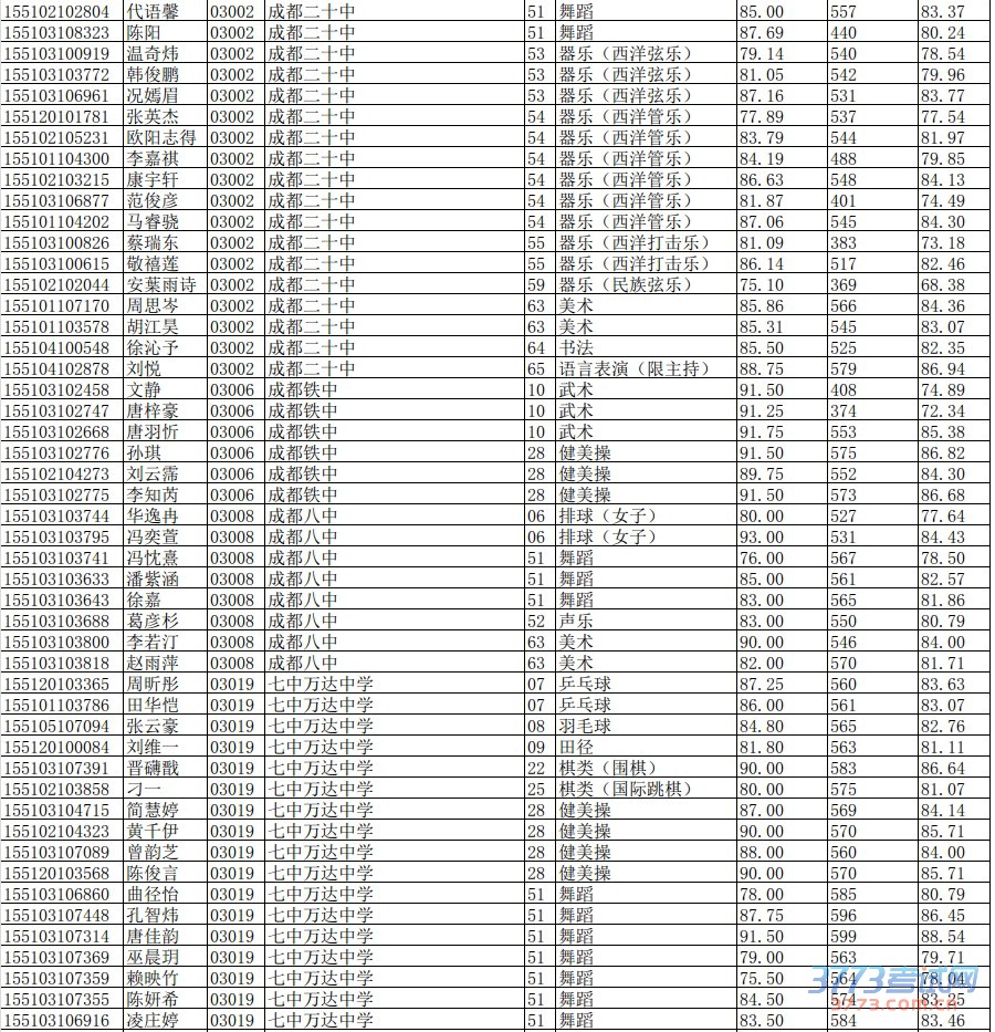 根据《成都市招生考试委员会 成都市教育局关于做好2015年成都市初、高中艺体特长生招生工作有关事宜的通知》(成招考委〔2015〕29号)的规定,现将各高中学校艺体特长生预录名单公示如下,公示期从7月3日起至7月7日。