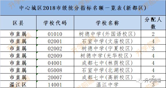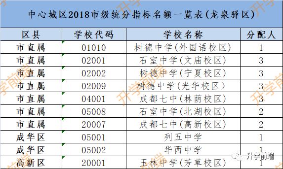 中考:2018年成都中考中心城区指标到校生市级统分指标分配细节
