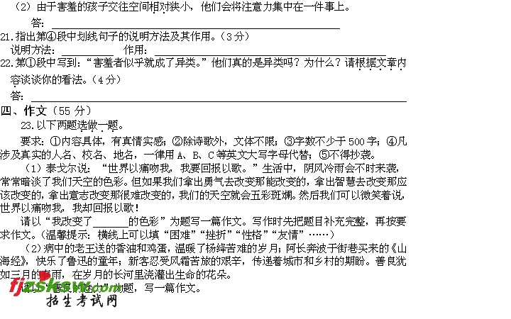 重庆2011年语文中考试题及答案