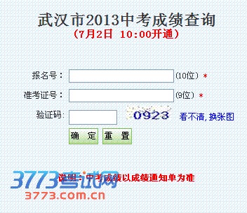 2013年武汉中考成绩7月2日公布 2013年武汉市中考成绩将于7月2日上午10:00公布。届时,武汉招考网(www.whzkb.cn)、号码百事通118114-8-9(免信息费)将提供免费查询,同时,考生成绩通知单将通过邮局投递到毕业学校,由毕业学校发至考生手中。