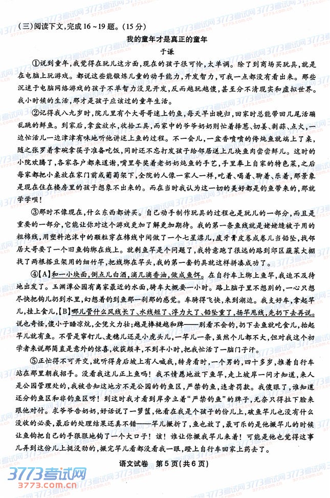 2014福州中考语文试卷及答案发布