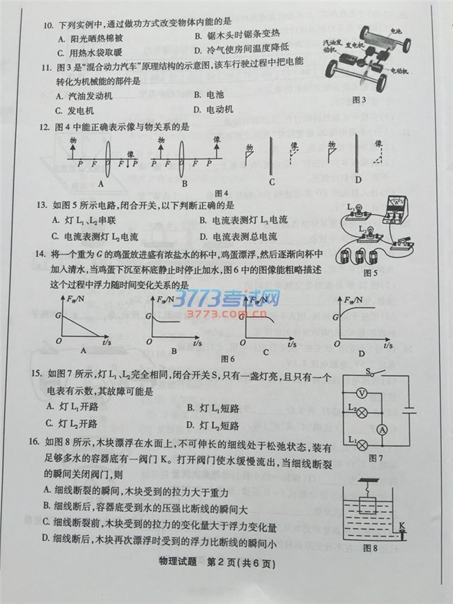 2016福州中考会考物理试题及答案发布