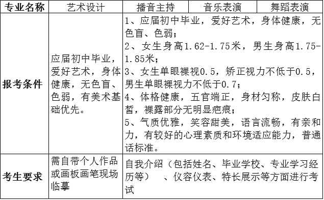 二、面试专业(具体专业及招生数以省教育厅下发计划为准):